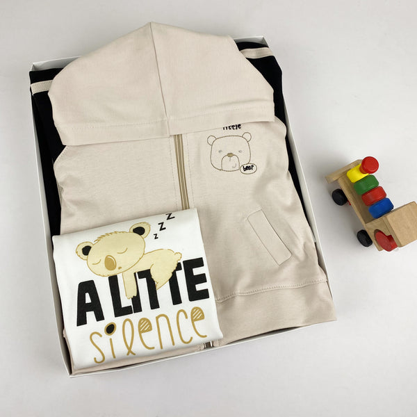 Nuestro conjunto es la dosis perfecta de ternura y diversión. Confeccionado con cariño y diseñado para la máxima comodidad, este conjunto hará que tu pequeño se sienta como un auténtico explorador. ¡No resistas la tentación de abrazarlo en este adorable!